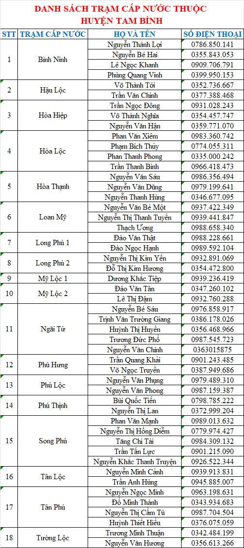 trạm cấp nước thuộc huyện tam bình