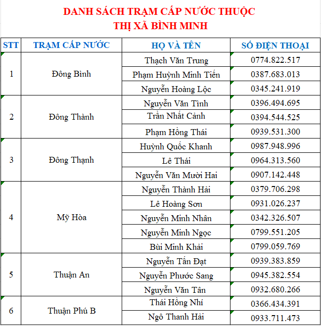 Tram cấp nước thuộc thị xã bình minh